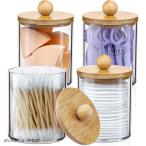 4点セットアクリルケース コットン収納 メイクケース 竹蓋付き 便利 綿棒ケース コンパクト 化粧品ボックス 綿棒入れ 小物入れ収納ケース メイク