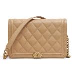 ボーイシャネル CHANLE チェーンウォレット キャビアスキン ベージュ系 ゴールド金具 保存袋付