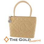 CHANEL 復刻トート A01804 キャビアスキン ベージュ シルバー金具 トートバッグ レディース シャネル◆中古