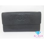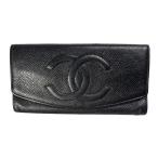 シャネル 二つ折り 長財布 黒 ブラック キャビアスキン レザー ココマーク ロング ウォレット CHANEL 【中古】【送料無料】 bs4029
