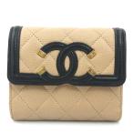 シャネル CHANEL 三つ折り財布 CCフィリグリー キャビアスキンレザー ベージュ/ブラック
