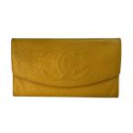 CHANEL シャネル ココマーク キャビアスキン 長財布 イエロー A-12557