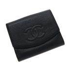 CHANEL シャネル ココマーク 二つ折りコンパクトウォレット コインケース ブラック キャビアスキン シルバー金具