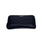 CHANEL◆ボーイシャネル/キャビアスキン/マトラッセ/ラウンドジップ/長財布/レザー/BLK/レディース