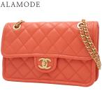 シャネル マトラッセ ココマーク チェーン ショルダーバッグ シングルフラップ キャビアスキン コーラルピンク 40802173302【アラモード】