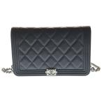 シャネル ボーイシャネル マトラッセ ココマーク キャビアスキン レザー チェーン ウォレット ショルダーバッグ シルバー金具 29番台