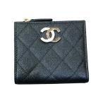 シャネル CHANEL ココマークコンパクトウォレット AP4181 ブラック ゴールド金具 キャビアスキン 二つ折り財布 レディース 中古