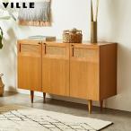 10/27 8:59まで最大10%OFF!爆買 キャビネット サイドボード ビレ ラタン 幅120cm 高さ80cm 木製 扉式 可動棚 配線穴
