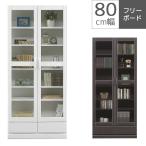 キャビネット 80cm幅 サイドボード 完成品 ガラスキャビネット 収納 脚付き ウォールナット 可動棚 ガラス コード穴