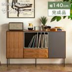 キャビネット サイドボード チェスト 収納棚 リビングボード 木製 140cm 天然木 おしゃれ ウォールナット ブラウン グレー 書棚 完成品 大容量