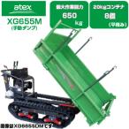 クローラ 運搬車 アテックス XG655M 【最大作業能力650kg 20kgコンテナ最大8個(平積み) 手動ダンプ 農業 運搬車 キャタピラ 乗用 ゴムクローラー エンジン 緑 箱型三方開 三菱エンジン搭載 ワイドクローラー クローラー運搬車 土木 土砂 資材 運搬 不整地】