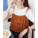 【店内全品30%OFFクーポン】12/10 23:59まで■リボンデザインニットキャミソール トップス レディース キャミソール ニット 肩紐リボン 重ね着 レイヤード セット着用【メール便可/100】