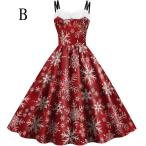 クリスマスワンピース キャミソールレディースレトロワンピース シャツワンピース クリスマス雪柄プリント 大きい裾ドレス 優雅 Aラインワンピース フランス