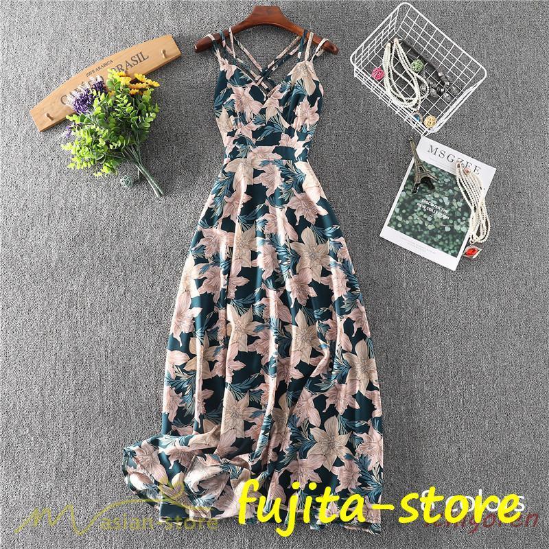 【期間限定10%OFF】ワンピース キャミソール ロング 花柄 フラワー キャミワンピ レディース ウエストゴム ワンピ ハイウエスト プリント ビーチ 旅行 2021夏新作 涼しい