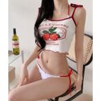 水着 Y2K チェリープリント ニット キャミソール&ビキニ 3点セット レディース