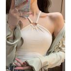 キャミソール レディース ホルターネックバッククロスフロントリングキャミソール
