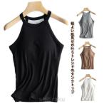 レディース カップ付き おしゃれ ホルターネック 重ね着 タンクトップ ブラカップ リブ生地 トップス シンプル カップ付きキャミソール 部屋着 イン