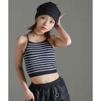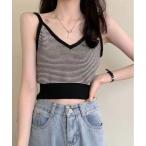 キャミソール クロップド丈 タンクトップ ボーダー柄
