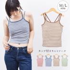 キャミソール カップ付き レディース トップス ダブルストラップ ボーダー リブ ショート丈 インナーレス PRD