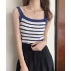 キャミソール ショート丈 リブ ニット ボーダー キャミソール