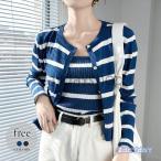 セットアップ キャミソール カーディガン ボーダー柄 フロントボタン 清楚 ドライブ 学校行事 定番 母親 リゾート お出かけ リモート 休日 女子旅