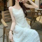 フリル ボーダー キャミソール マキシ ワンピース ノースリーブ レディース 女性 夏 サマー 無地 無地 単色 ワンカラー ロング丈 色っ