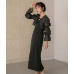 ドレス シアーブラウス&マーメイドキャミソールパーティードレス 結婚式 お呼ばれワンピース