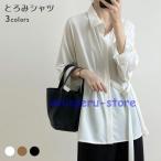 とろみシャツ 長袖 レディース カジュアルシャツ ゆったり ベルト付 ブラウス お洒落 無地 長袖シャツ 白シャツ 長袖ブラウス 春 秋 レイヤードコーデ
