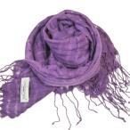 ストール ブランド レディース エアコン 冷え 冷房対策 日焼け対策 首元 イタリア パープル 透かしチェック柄 シルク混 コットン LANCIONI 送料無料