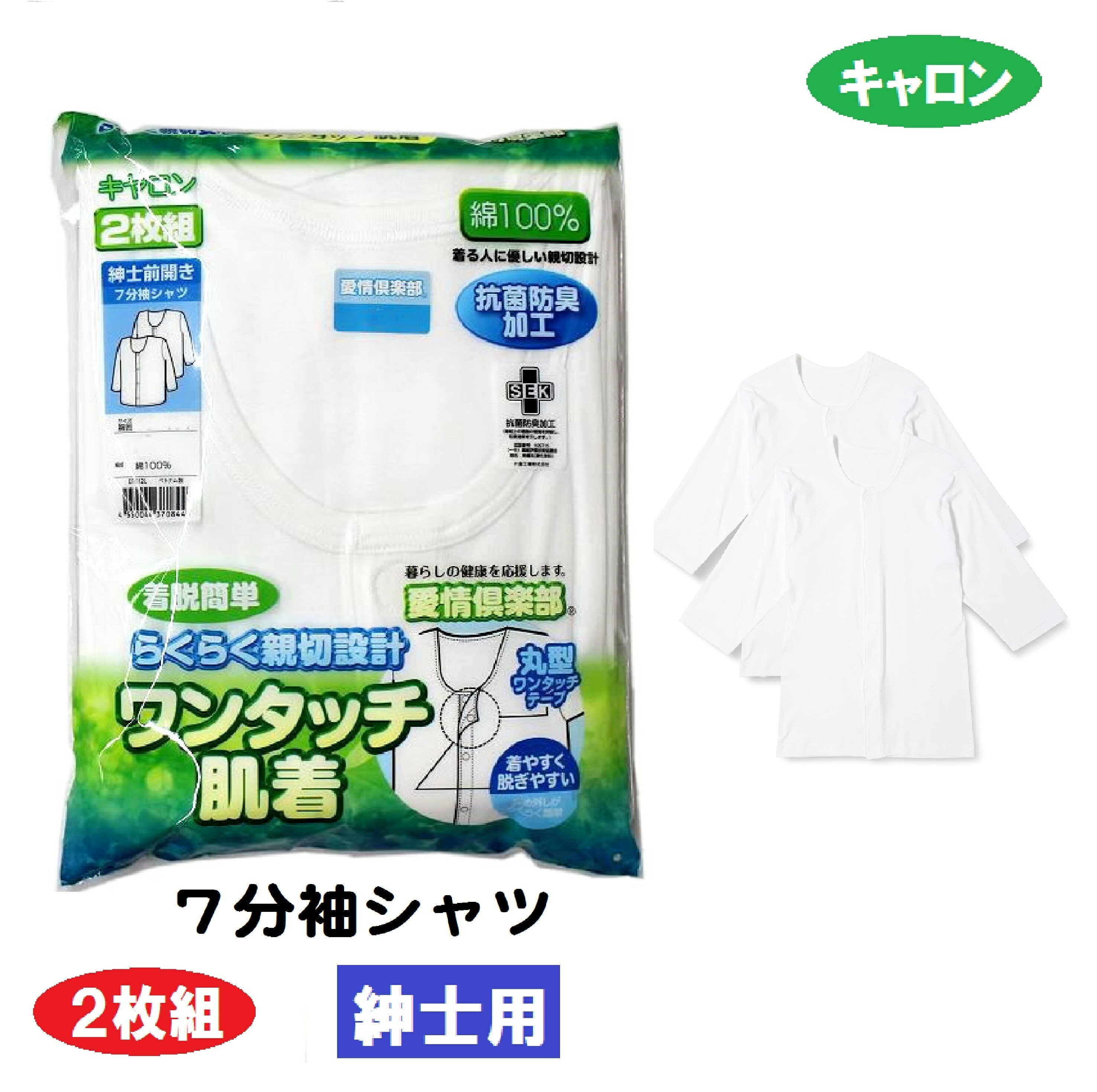 【キャロン】【介護】【2枚組】【紳士】 【7分袖シャツ】【ワンタッチ肌着】 介護肌着 片倉工業「カタクラキャロン」紳士用 前開き 七分袖 ワンタッチテープ開閉 らくらく親切設計 入院通院 Mサイズ Lサイズ LLサイズ オグランジャパン メンズ 敬老 DTO12