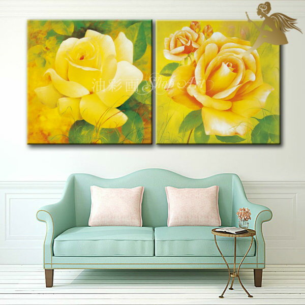 アートパネル 花【送料無料】絵画 壁掛け インテリア 絵手書き 油彩画 油絵 風景画モダン アートパネル『2パネルSET イエローローズ 1721』【キャンバスアート 花】壁飾り 北欧 ウォールデコ アートボード クラシカル
