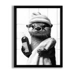 SYWENNOI フレーム入り黒と白のバスルームキャンバスウォールアート、面白いカワウソは準備ができています お風呂アート ウォールデコ、農家 ユーモア 動物 アー
