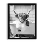 SYWENNOI フレーム入り黒と白のバスルームキャンバスウォールアート、バスタブの面白いハイランドカウアートウォールデコ、農家ユーモア動物アートプリント トイ
