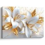 CCWORKERRY ホワイトゴールドユリ フローラル キャンバスウォールアート 3Dテクスチャ花ポスター