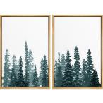 SIGNWIN フレーム入り キャンバスプリント ウォールアート 森 緑 松 森 自然 木 水彩 ミニマリズム コンテンポラリー リラックス/穏やか リビングルーム 寝室 オ