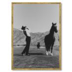 ヴィンテージカウボーイゴルフ 白黒ウエスタン馬ポスター 額入りキャンバスアート モダンミニマリスト