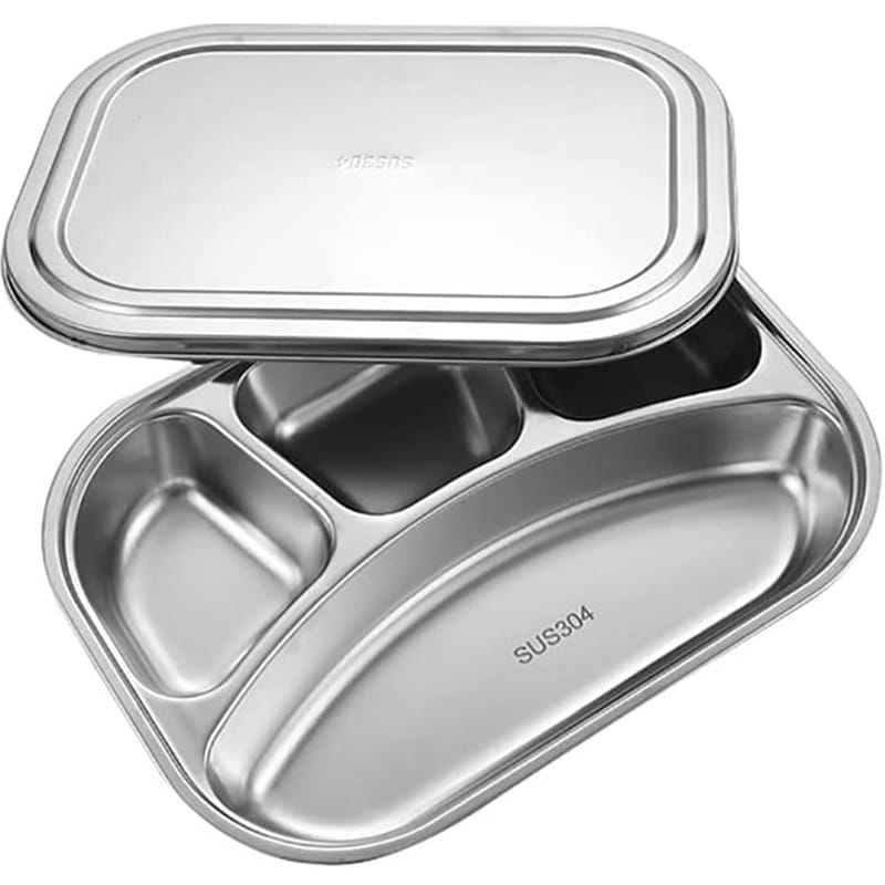 【PT10倍+10%OFFクーポン】4つ仕切り ランチプレート ディナープレート ランチプレート ふた付き ステンレス 皿 おしゃれ 仕切り皿 分割 コンテナフードプレート キャンプ用 バーベキュー用 父の日