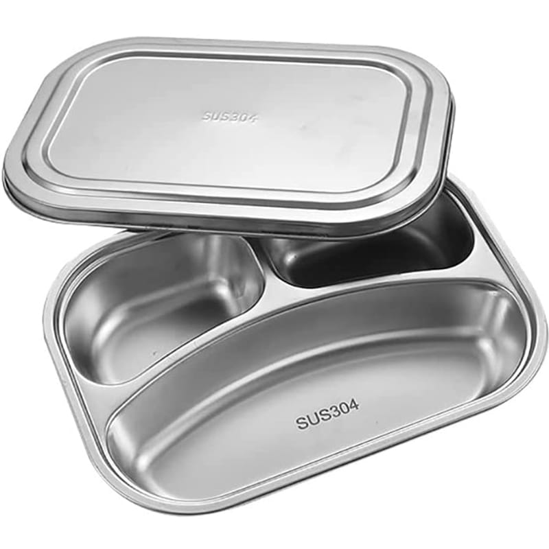 【PT10倍+10%OFFクーポン】3つ仕切り ランチプレート ディナープレート ランチプレート ふた付き ステンレス 皿 おしゃれ 仕切り皿 分割 コンテナフードプレート キャンプ用 バーベキュー用 父の日
