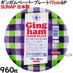 紙皿 ギンガムペーパープレート 17cm 業務用 960枚(6枚×160パック)/ケース サンナップ 日本製 P1706GIN