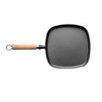 フライパン 鋳鉄フライパン 四角い焼き皿 焦げ付かない 調理鍋 耐久性 木製ハンドル付き 手入れが簡単 屋外バーベキューキャンプ用 家庭用 業務用 (フライパン)