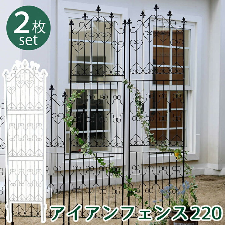 【5%OFFクーポン配布中】柵 おしゃれ アイアンフェンス220 ハイタイプ 2枚組 頑丈 通気性 開放感 エレガント アンティーク風 ナチュラル かわいい ガーデニング グリーンカーテン 仕切り