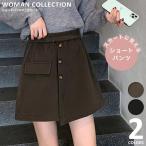 パンツ キュロット 冬 ショートパンツ レディース ボトムス ショート丈 スカート ミニスカート きれいめ ハイウエスト スカッツ 秋 大きいサイズ ウエストゴム