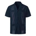 メンズ 半袖シャツ 夏服 キューバシャツ 刺繍 オシャレ 折り襟 トップス ハワイアン ビーチシャツ 海 リゾート 汗染み防止 薄手