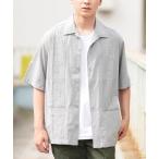 シャツ 「SETUP7」ジャカード織りキューバシャツ ハーフスリーブ シアーシャツ リラクシングワイドジャガードシャツ メンズ