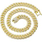 【並行輸入品】JUNVirtuous Cuban リンクチェーン メンズ アイスアウト マイアミ キューバネックレス シルバー/ゴールド キラキラダイ