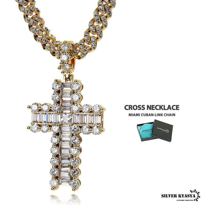 \スーパーSALE 10%OFF 19,800円→17,820円 /真鍮 クロスマイアミキューバンネックレス5Aジルコニア 18KGP メンズ ヒップホップ ゴールド 細め 専用BOX付属