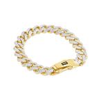 【並行輸入品】Nuragold 10Kイエローゴールド 11mm モナコ マイアミキューバ ダイヤモンドカット パヴェリンクチェーンブレスレット