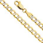 【並行輸入品】The World Jewelry Center 14Kリアルツートーンゴールド メンズ 6.5mm 中空キューバカーブ ホワイトパヴェ