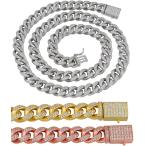 【並行輸入品】20mm メンズ アイスアウト キューバ リンク チェーン ネックレス ヒップホップ 14k ゴールド/ホワイトゴールド メッキ マイア