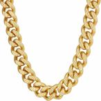 【並行輸入品】ゴールドチェーンネックレス 14mm 24K ダイヤモンドカット スムースキューバリンク 米国製 (24)